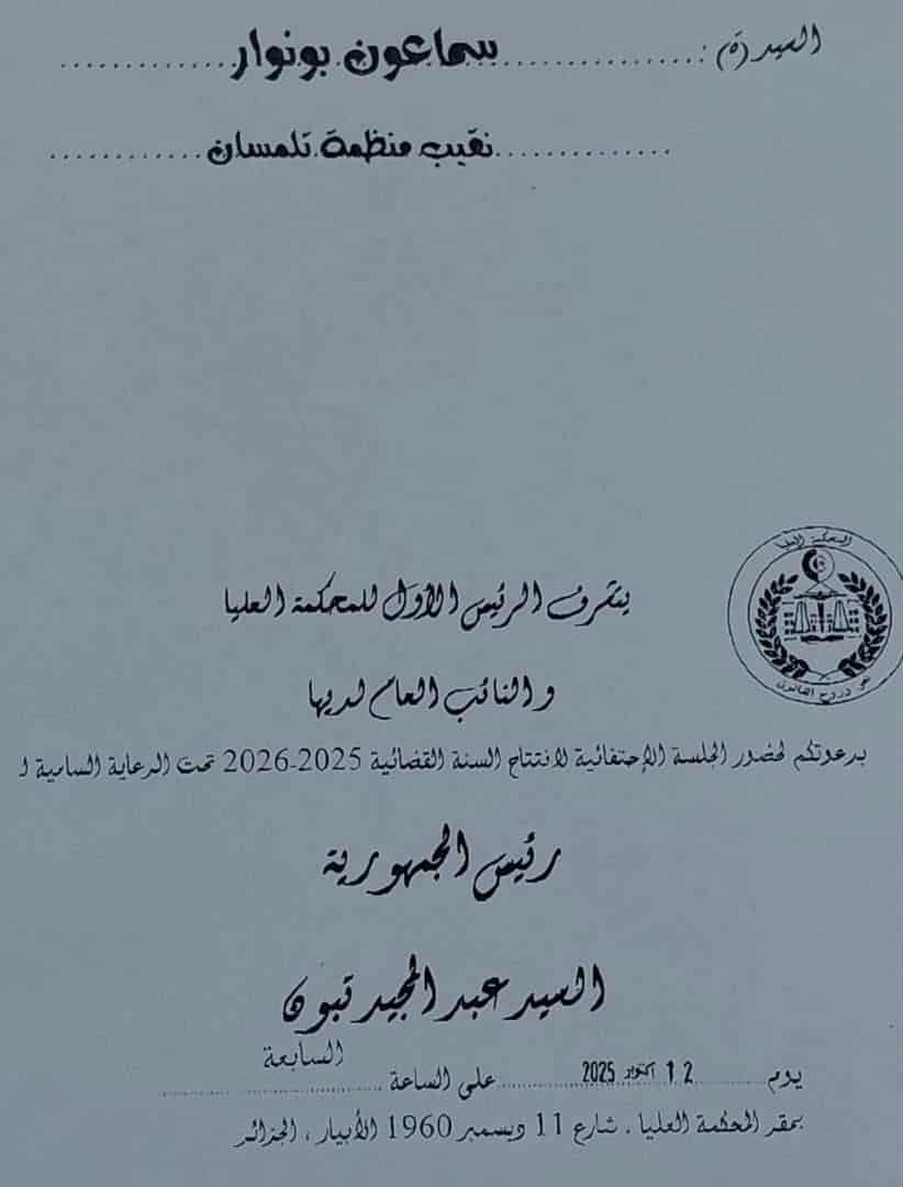 دعوة لحضور الجلسة الإحتفائية لإفتتاح السنة القضائية 2025 - 2026